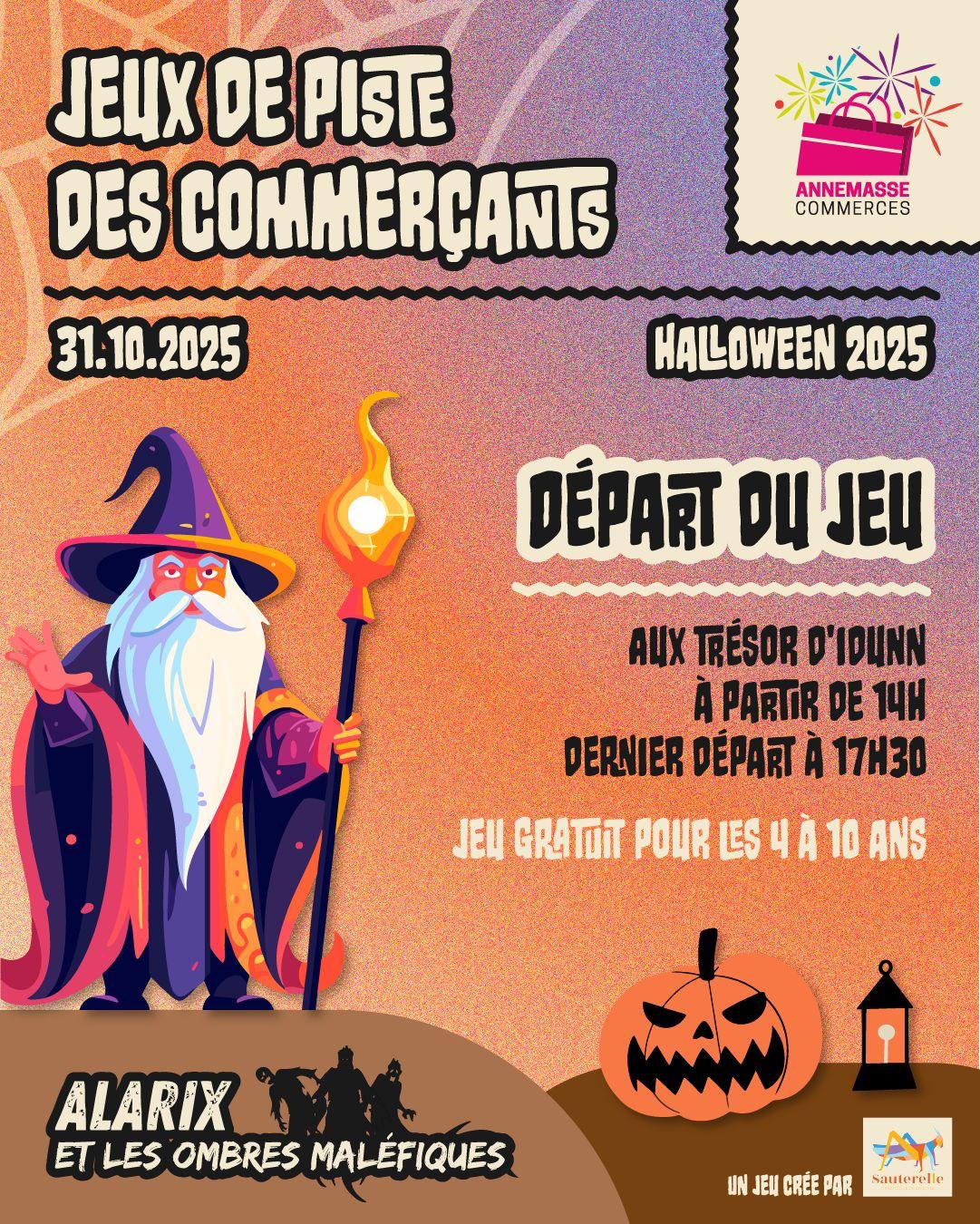 Le jeudi 31 octobre prochain, Annemasse Commerces vous invite à participer à leurs jeux de piste, spécialement organisés pour Halloween. Tout au long de l’après-midi, vivez une aventure captivante et ludique en famille ou entre amis, mêlant énigmes et surprises.