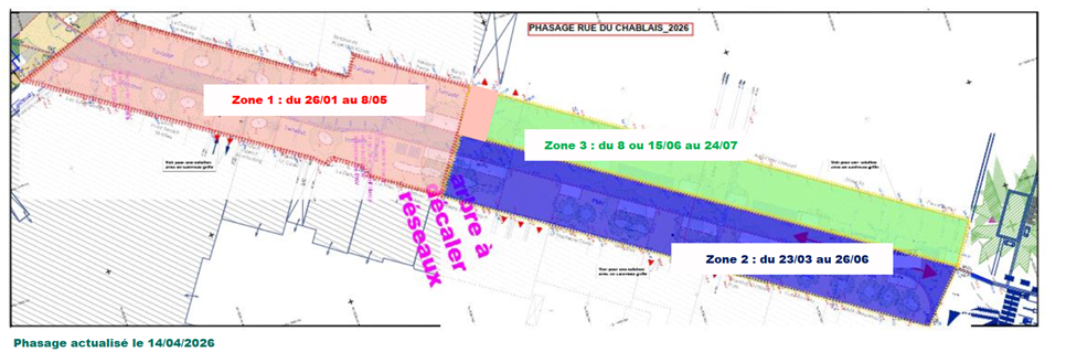 Voici le phasage actualisé de l'ensemble de la rue– avec dates prévisionnelles hors nouveaux aléas chantier et intempéries : cf. image 1