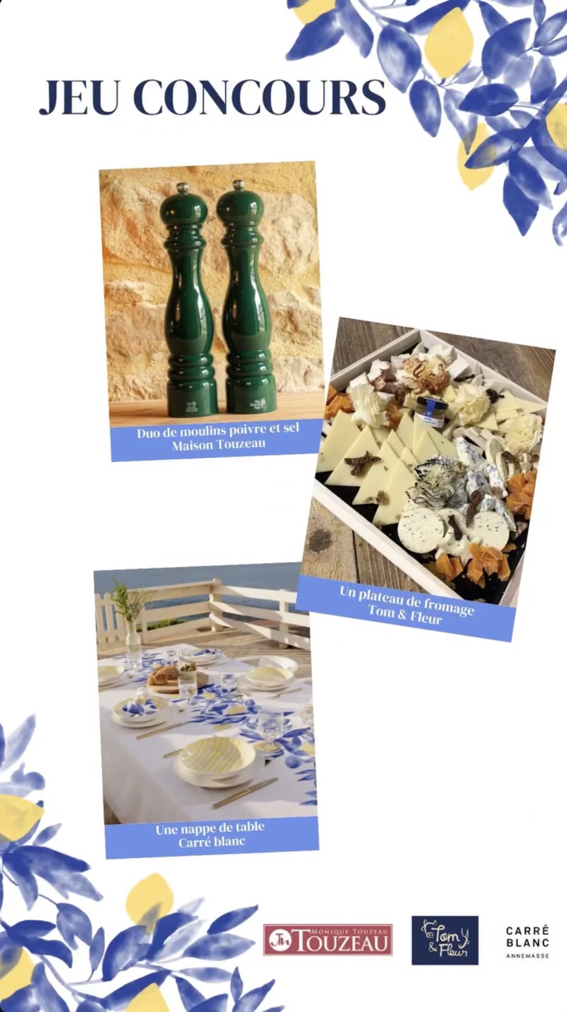 À la clé de ce événement, vous aurez la possibilité de remporter un plateau de fromages signé Tom & Fleur, un duo de moulins sel et poivre de chez Touzeau, ou encore une nappe offerte par Carré Blanc.