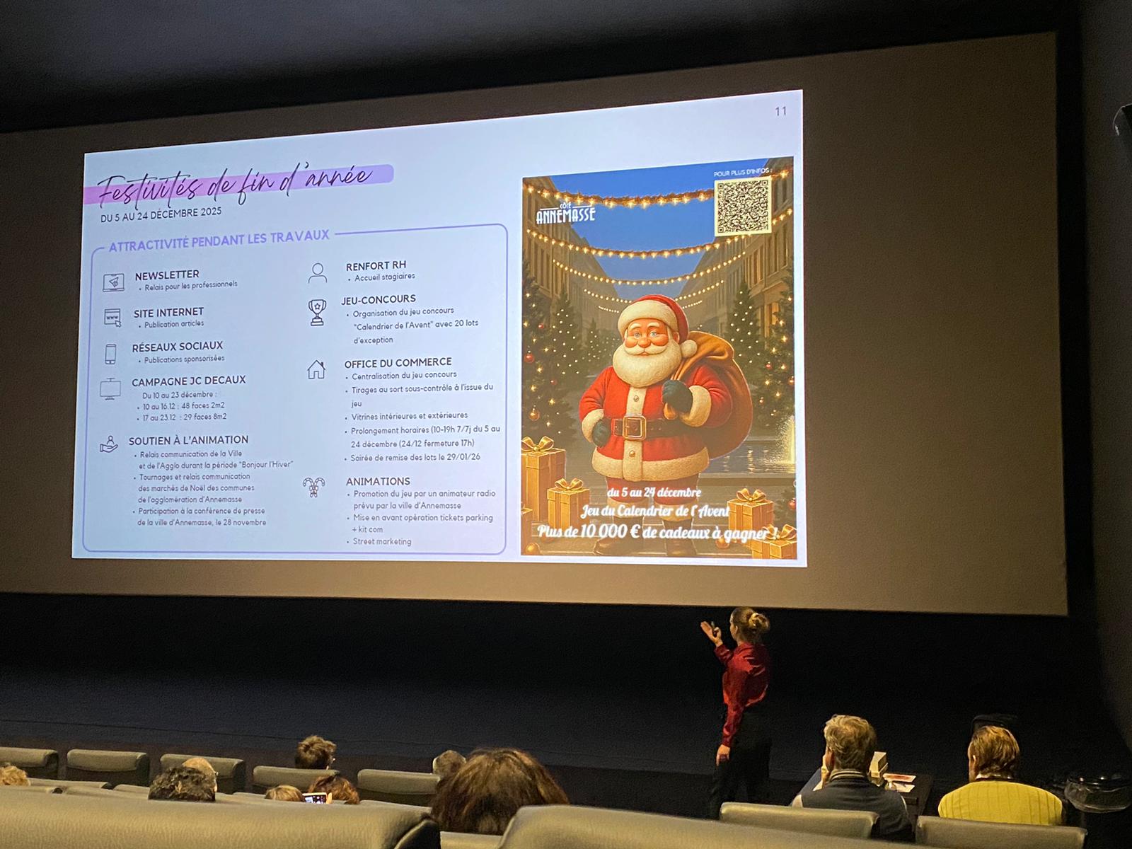 Le mercredi 4 mars dernier, Côté Annemasse a réuni ses administrateurs et les commerçants du territoire au cinéma Studio 6 à l’occasion de son Assemblée Générale annuelle. Cette soirée a permis de revenir sur le bilan d’activité et les temps forts de l’année écoulée. Les invités ont pu également découvrir les grandes orientations et le plan d’action 2026, pensé pour continuer à accompagner et valoriser les commerces des 12 centralités de l'agglomération d'Annemasse.
